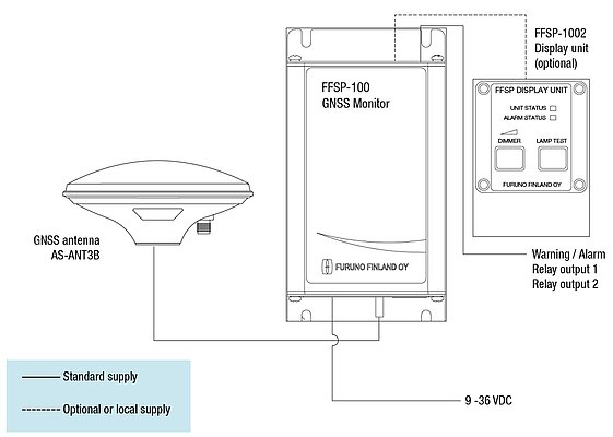 As soon as interferences are detected, quick reaction is key for safe navigation. Status of the current GPS signal can be viewed with the optional Display unit. Algorithms detect interference and anomalies within the GNSS spectrum and data, this means that the FFSP-100 monitors different values that are important for position calculation and checks them for their quality. Values that are being monitored include, but are not limited to spectrum, power level, the number of satellites in view, signal to noise ratio and missing data informations. The system is able to work with GPS, Galileo, Beidou and Glonass, which covers nearly all commercial vessels or civil usage areas. Different coloured Led´s are indicating the current status. Green LED is indicating normal operation. Blue LED is indication poor GNSS signal or weak interferences. Red LED is indicating strong interferences, jamming or spoofing.